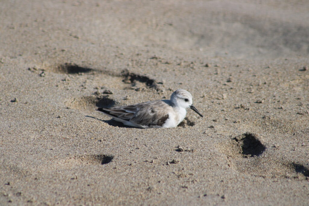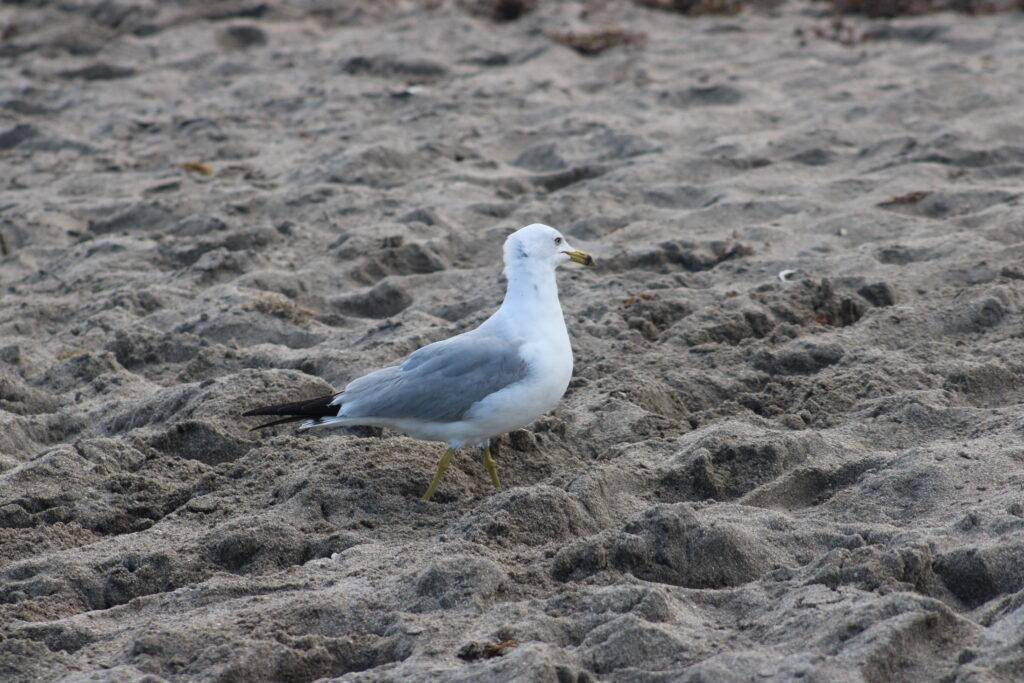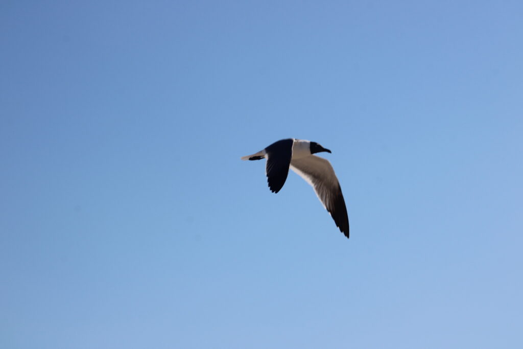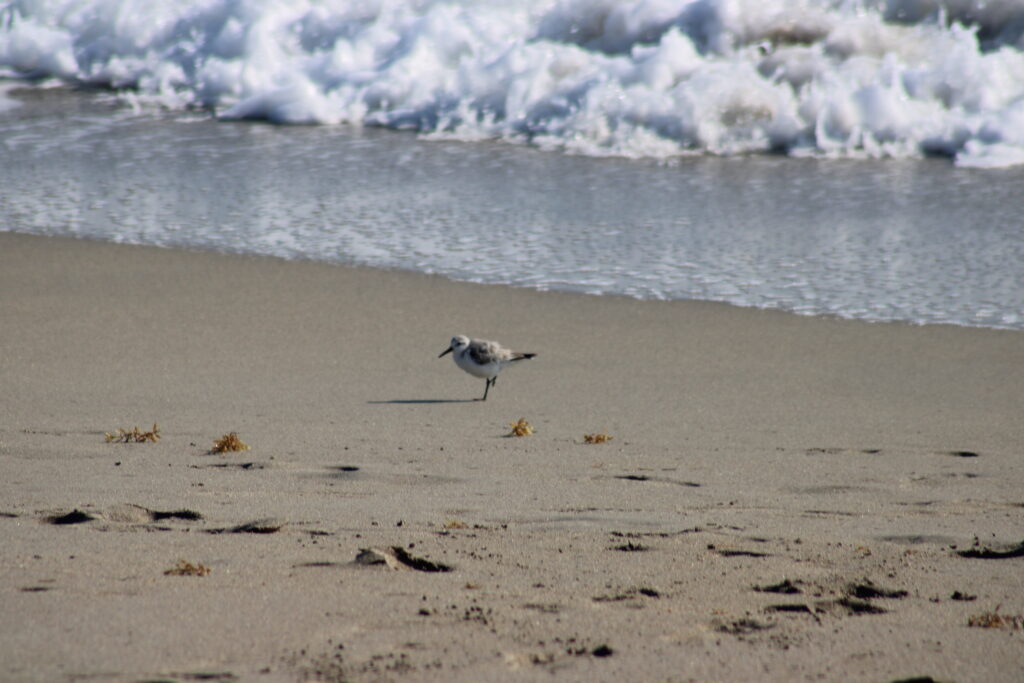Because there are fewer people here and there are nature preserves near the beach sand pipers, seagulls, and pelicans were all around us. The sand pipers would search the sand between the groups of people for bugs and the seagulls searched for food that people dropped. While pelicans were flying over our heads.