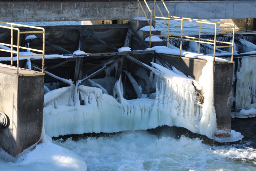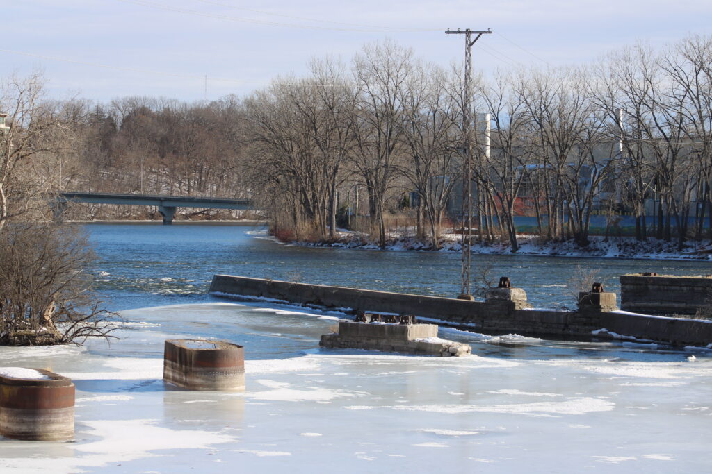 So after playing frogger with traffic along Law St, I got to the Newberry Trail. Turning west I started along side the frozen navigation channel of the river.