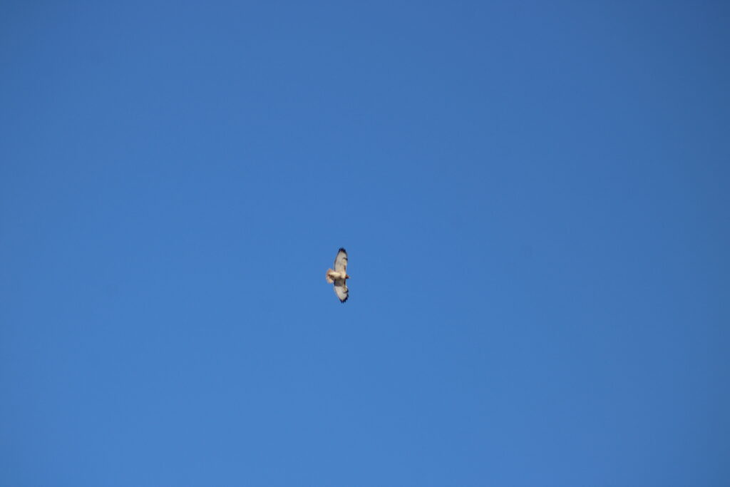 Suddenly I saw something larger in the sky above the river. It almost looked like a small plane without a reference point for size. A red tail hawk hovered in the wind over the water.